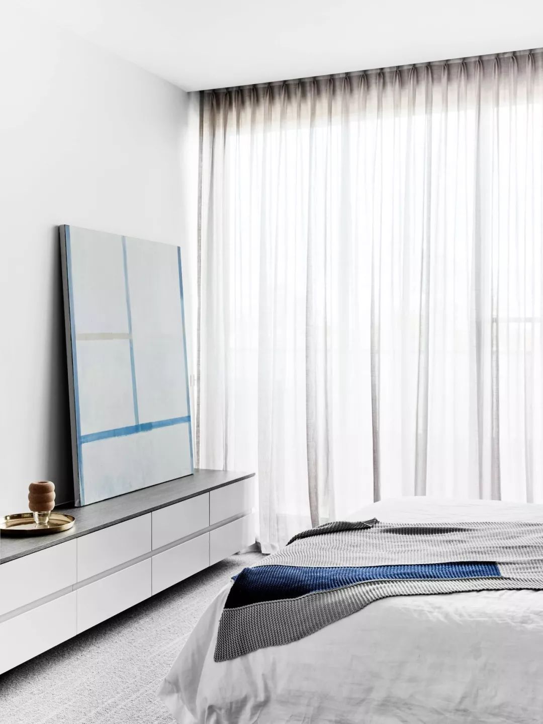 而北向臥室的窗簾就相對(duì)來(lái)說(shuō)隨意一些,布質(zhì)垂直簾,透光性較好的風(fēng)琴簾、卷簾都可以,只要注意控制光線、保護(hù)隱私即可。
