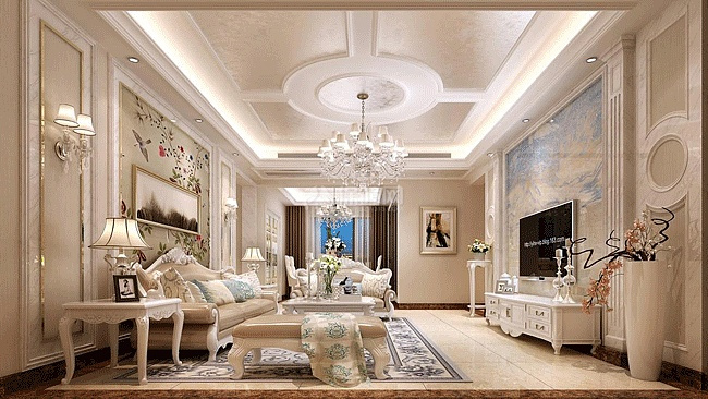 要營造這種高貴華麗的色調(diào),可以使用材料勾勒金屬飾邊或拼塊,例如,柔和的米色壁紙,使用反光性好的玻璃、金屬等材料來點(diǎn)綴。