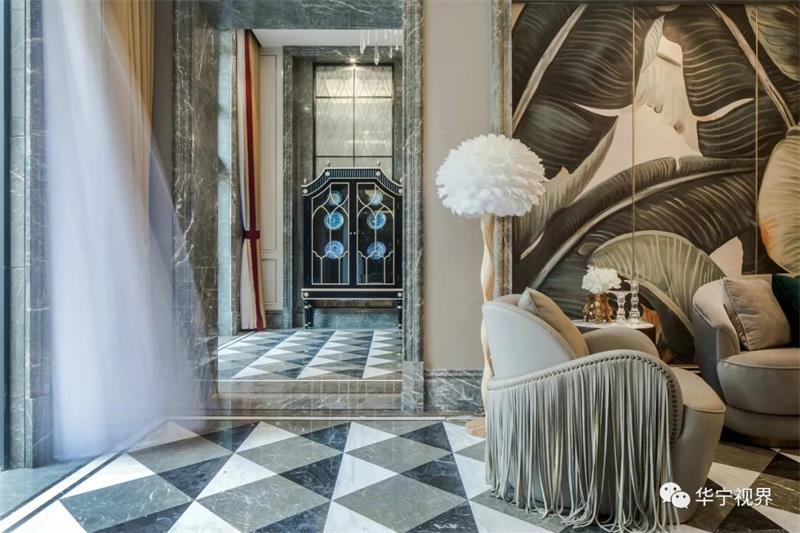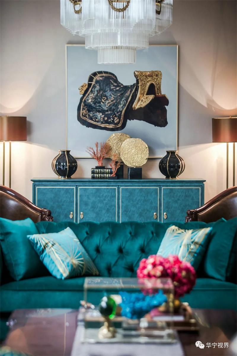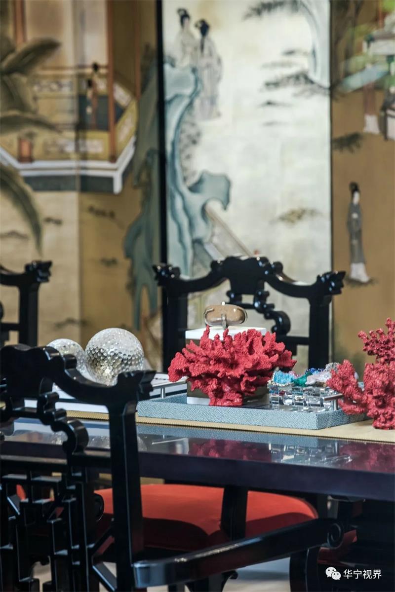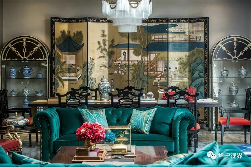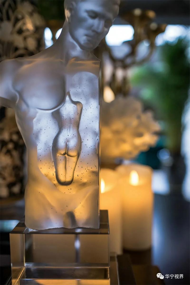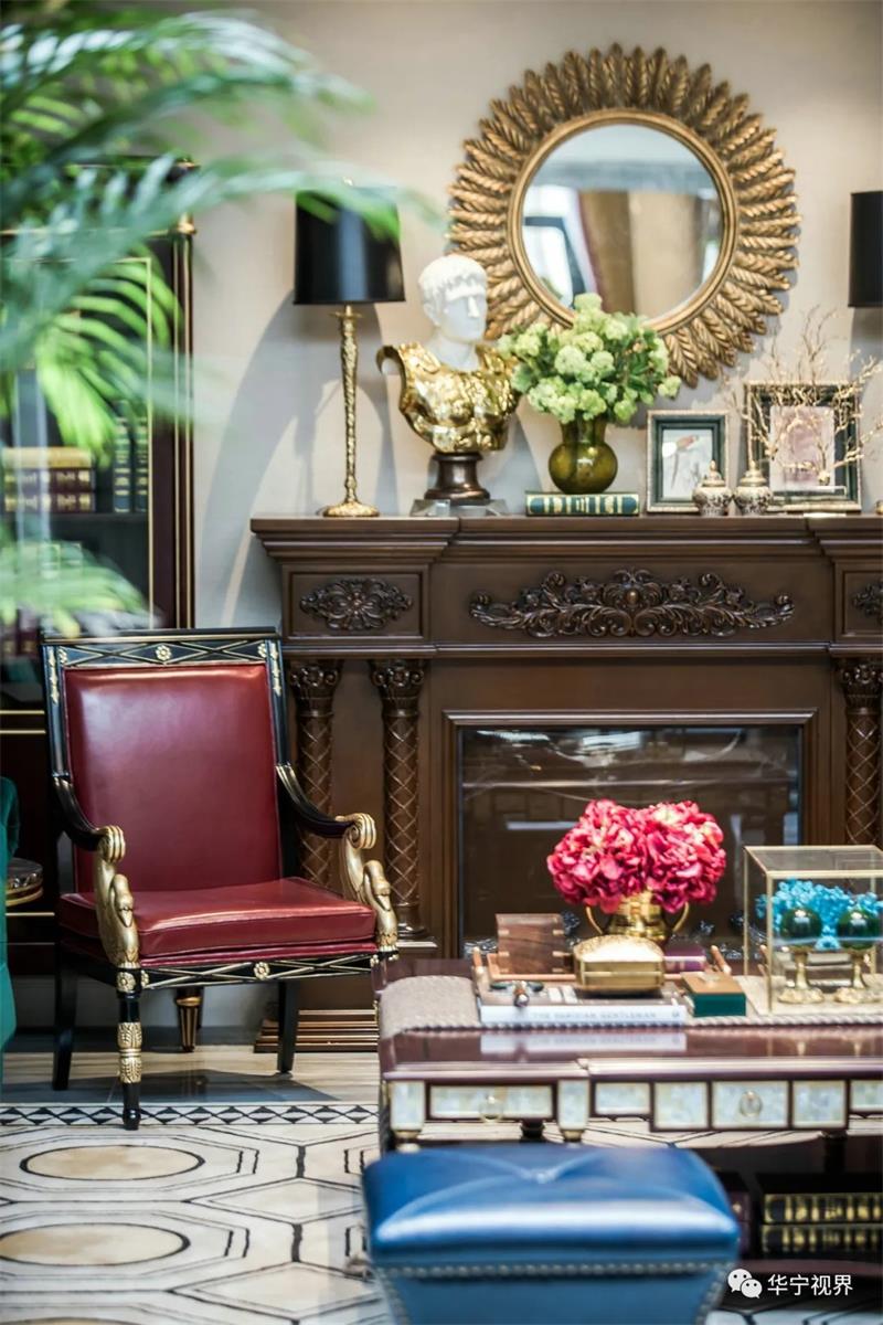在這個(gè)本身并不生動(dòng)的沙龍空間,設(shè)計(jì)師極盡所能地以輝煌壯觀的紀(jì)念收藏與低調(diào)的奢華來填滿它,讓它成為一個(gè)溫馨、有生氣的、嗅不到一絲愁緒的、令人想一探究竟的神秘殿堂。雕塑和繪畫,讓它獨(dú)特且充滿歷史意義,實(shí)現(xiàn)了中西在室內(nèi)軟裝上的完美結(jié)合。