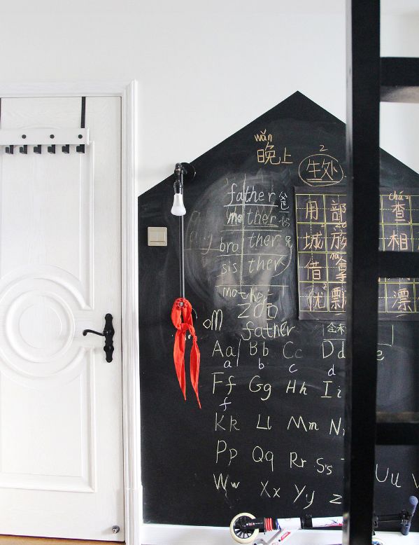 把整面或者局部的墻面做成黑板墻,除了起到裝飾效果以外,還能方便家里的孩子涂鴉、兩口子偶爾在上面寫著雜碎小事來記錄生活的美好、帶著孩子一起出個黑板報培養(yǎng)感情等。