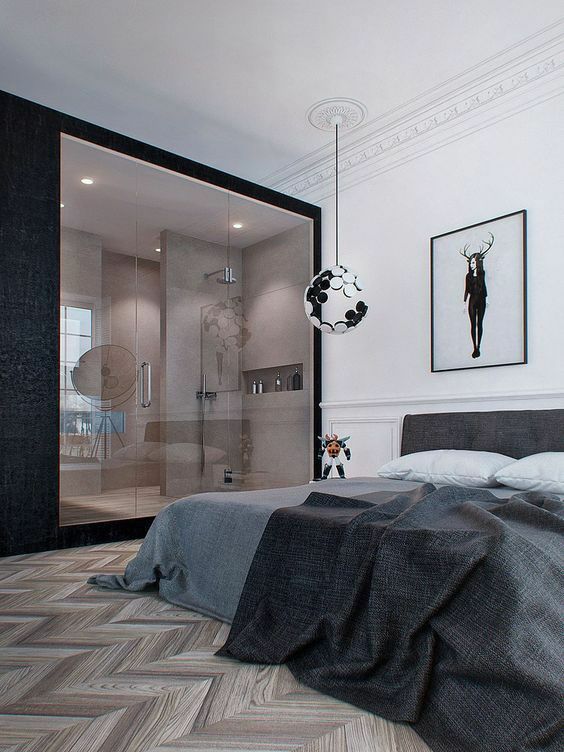 用黑框玻璃窗來阻斷衛(wèi)生間與臥室的界限,不僅可以解決暗衛(wèi)本身存在的采光問題,而且視覺上更具時(shí)尚效果,令整個(gè)臥室的質(zhì)感瞬間提升。