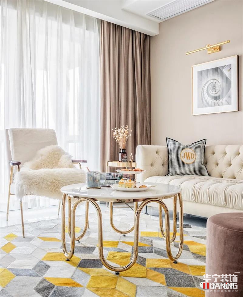 細(xì)節(jié)是最能窺見一個(gè)人的生活品味與精神追求??蛷d在空間上保持格局的方正與通透,卻在材質(zhì)、色彩與形狀上十分講究,以藝術(shù)化的視角營造出時(shí)尚高雅的寓居空間。