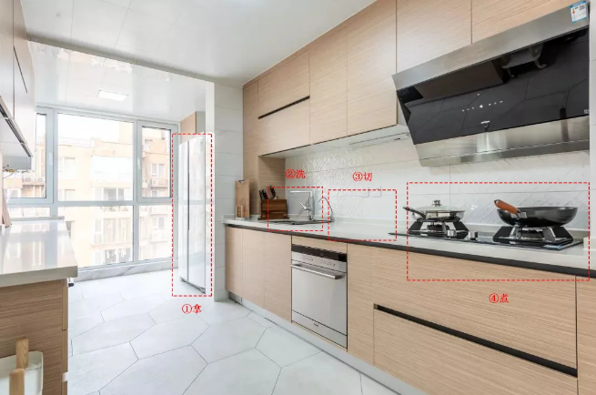 合理的廚房動(dòng)線,各個(gè)功能區(qū)分開,排列的順序符合,符合日常做飯的操作順序,這樣的自然可以讓你少折騰的。當(dāng)然是從左到右還是從右到左,根據(jù)自己的習(xí)慣來就行了。