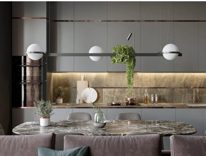 安裝什么樣的燈,也就不說,主要還是說說廚房燈具的數(shù)量。可以明確的說,廚房當(dāng)中只安裝一個(gè)主燈,那是不夠的。為什么呢,做過飯都知道,如果只有一個(gè)主燈,吊柜遮擋以及背光等原因,會導(dǎo)致一些地方看不清楚的。
