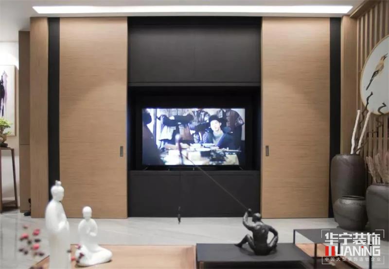 客廳電視背景墻不是呆板的按部就班,設(shè)計師打破傳統(tǒng)的設(shè)計法,用簡潔的推拉門代替背景墻,電視隱藏其中,上方凹槽燈帶暗藏投影幕布,既節(jié)約了空間又增強實用性,隱藏法讓整個空間更加簡潔美觀,這才是設(shè)計真正的價值與魅力。