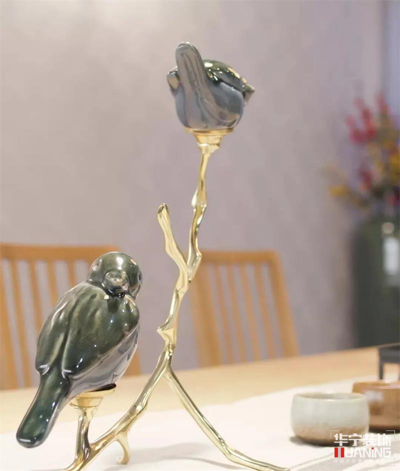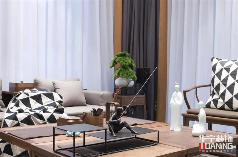 客廳整體以實木為基調(diào),綠植、雕像、銅像等細節(jié)處點綴的小擺件都是精神意蘊的具象表達,富有內(nèi)涵的空間藝術(shù)構(gòu)塑出現(xiàn)代東方的和諧調(diào)性。黑白幾何拼接抱枕以其現(xiàn)代簡約的格調(diào)強化空間秩序,跳躍的色彩增添空間活力。
