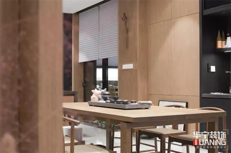 沒有茶室的新中式是不完整的,設(shè)計師在四樓設(shè)計了一個榻榻米式的茶室,空間隱秘安靜。閑坐桌旁,燃一線香,沏一壺茶;飲與友,噶一口,意心生;入喉的是茶,伴隨著茶香;流淌在心底的是生活的詩意;一隅靜謐,內(nèi)心繾綣繚繞。