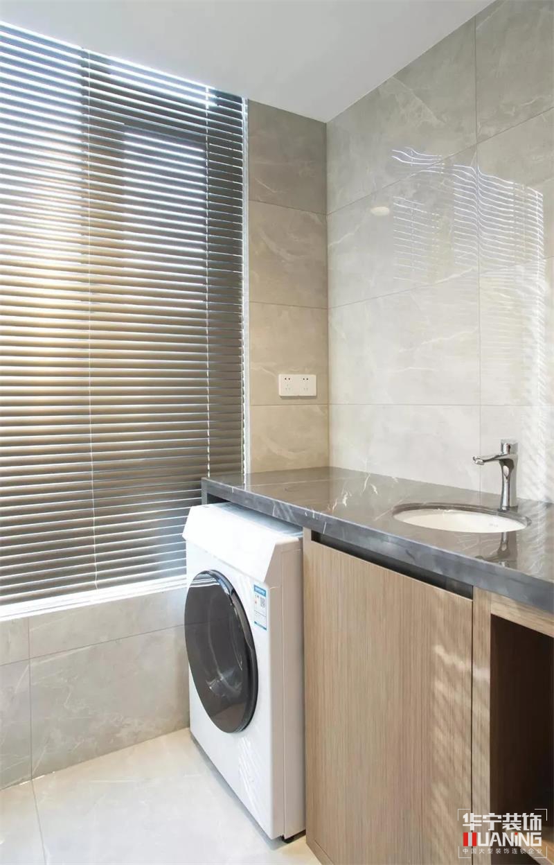 主人房具有獨立衛(wèi)生間、獨立梳妝間、獨立衣帽間、獨立洗衣房,每一個空間位置的確定都是經(jīng)過仔細考量,突出人性化設(shè)計。洗衣間與衣帽間是一條直線,用玻璃門隔開,既保證兩個空間的獨立性,又能最大化的保證每一個空間的采光與通風,同時這也是洗衣晾衣收納整理的最短路線,節(jié)省空間與時間。
