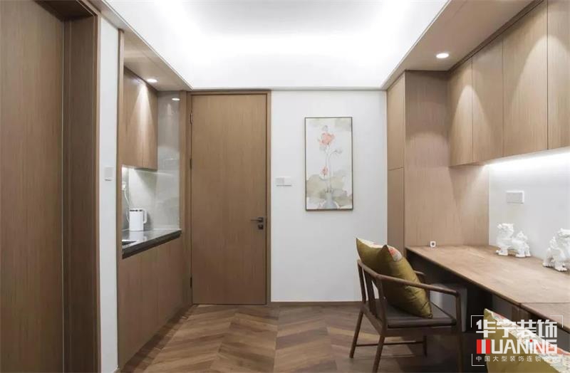 大面積實木鋪就的書房凝結(jié)東方美學精髓的悠遠氣韻,尋得清幽之處,讓思緒伴著墨香盡情揮灑。到頂書柜定制設(shè)計,無主燈設(shè)計讓整個空間更加簡約溫暖。