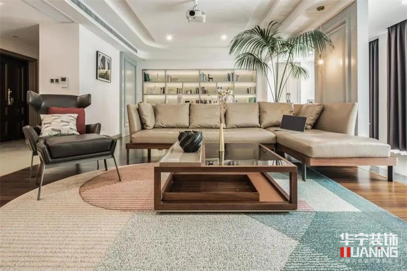 淺色系的客廳輕盈有質(zhì)感,營造出舒適無壓的自由空間,豐富的細(xì)節(jié)處理賦予空間多種表達(dá)。造型簡潔的方形茶幾搭配深色木紋地板、皮質(zhì)沙發(fā),從顏色、形狀和材質(zhì)多維度的展現(xiàn)現(xiàn)代美學(xué)的藝術(shù)張力。