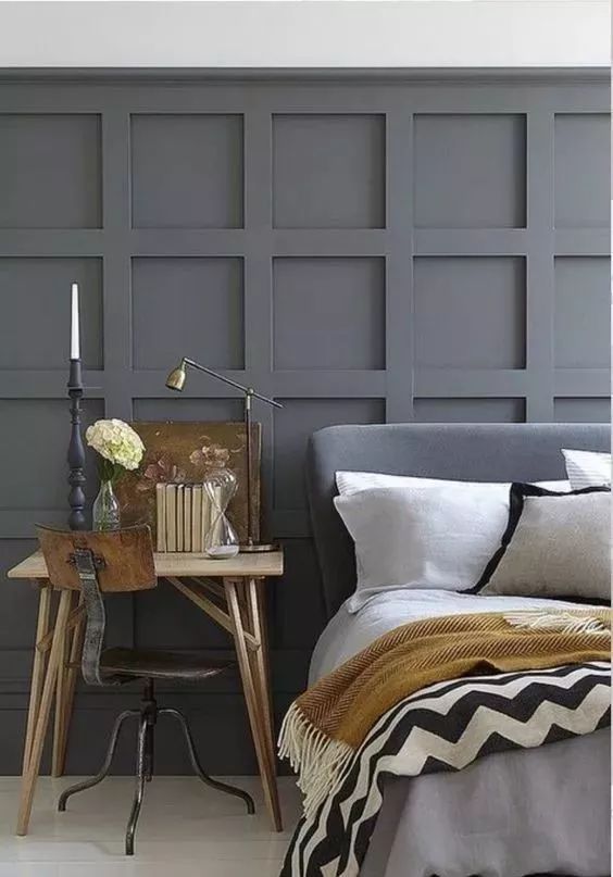 方形造型的護墻板非常適合作為客廳或臥室的背景墻使用,一般都是滿墻鋪設,而且,最終的設計效果比壁紙有質感,比墻漆更時尚。
