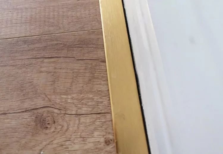 于是問題來了~收邊條屬于比較輕的材質(zhì),而且大多是用玻璃膠來做密封的,又不能固定在墻上。沒有重量壓住地板,踩到某些地板位置的時候,總感覺不平整,仿佛踩一頭翹一頭。后來還是重新裝了窄邊踢腳線才算完事。