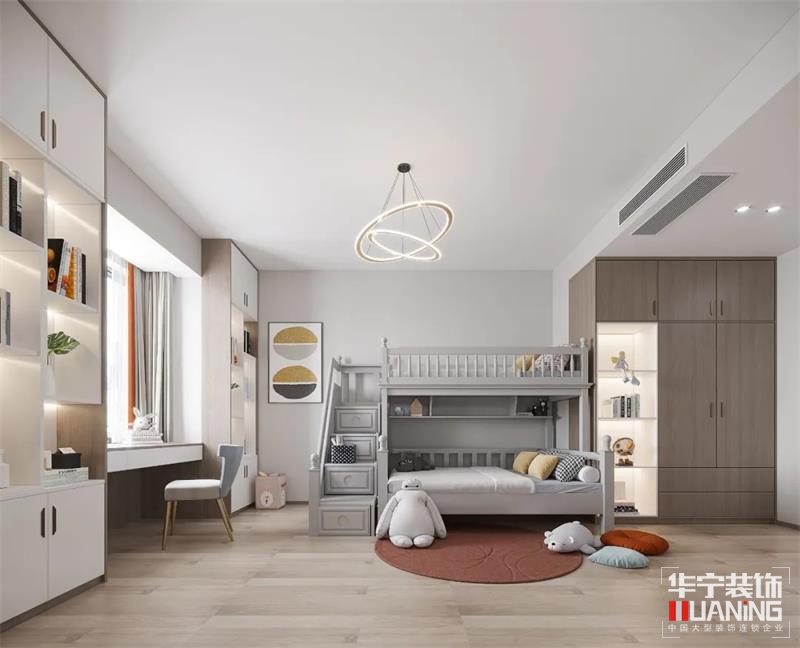 次臥以現(xiàn)代大方的空間為主,沒有什么復雜的設(shè)計,也沒有什么繁雜的色彩,平平淡淡的空間,也是充滿安靜優(yōu)雅的檔次感。營造出意味深長且充分親近自然又足夠舒適令人愉悅的居住環(huán)境。 兒童房