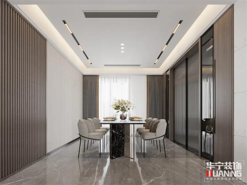 客廳與餐廳以寬闊的視野,簡約的色調(diào),打造了空間的延伸感,在設(shè)計組合中將浪漫奢華的小精致感表達出,顯得格外的有意境。大理石的餐桌和簡潔的餐椅,整個餐廳給人一種端莊優(yōu)雅的感覺。