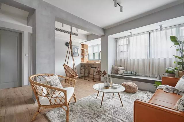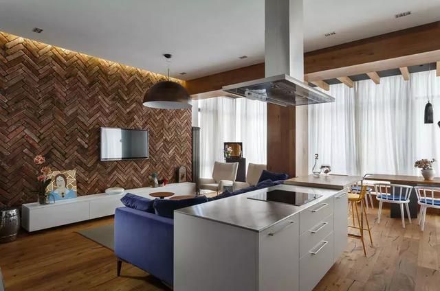 如果橫梁剛好在客廳與其他空間的交界位置,那么恭喜你,可以用最方便的方式化解了——把橫梁作為兩個(gè)空間的隔斷設(shè)計(jì)。直接將橫梁作為吊頂隔斷,在視覺(jué)上對(duì)橫梁做了處理,又無(wú)需再單獨(dú)做天花板,省空間更省錢(qián)。