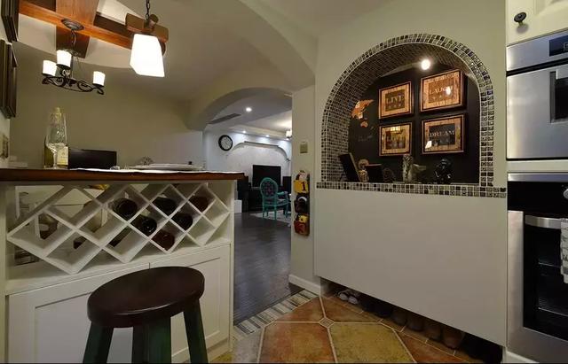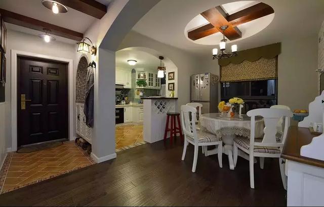 這種做法尤其適合田園風(fēng)格的家居設(shè)計(jì),把橫梁做成門(mén)勢(shì)必會(huì)占用一定的空間高度,但田園風(fēng)格色彩明快跳躍,可有效中和這種壓迫感,搭配花磚或者木柵欄就更加可愛(ài)啦。