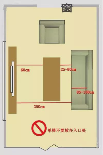 (2)沙發(fā)和單椅不要在入口處擺放,體積小的單椅不妨擺在靠近動線的地方,若空間能夠容納貴妃椅,可以擺其在窗前,搭配上兩人或三人沙發(fā)(保留750px左右距離);