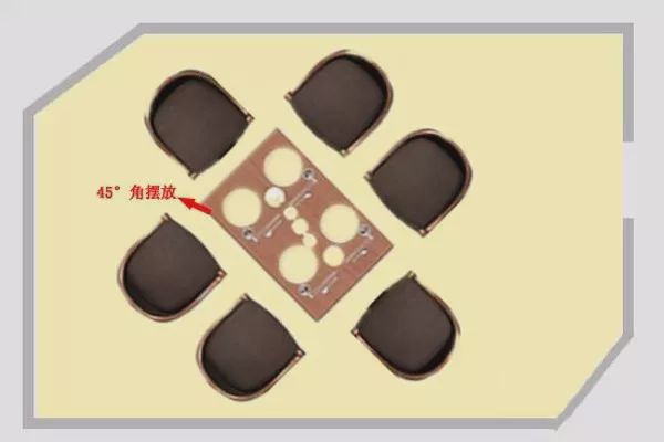 4、將餐桌呈45°角擺放