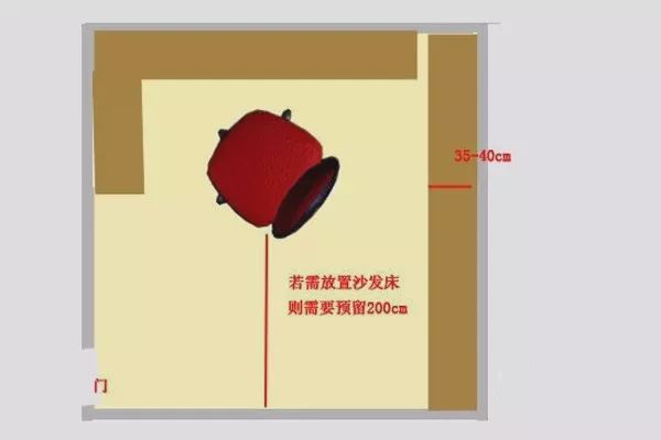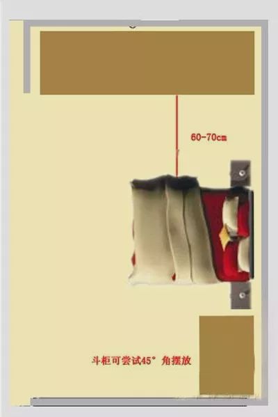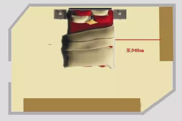 (3)床架、衣柜、斗柜建議分散擺放在三面墻,躺下床的時候看不到衣柜角這樣的距離和高度就差不多了,距離約在5750px以內(nèi)。