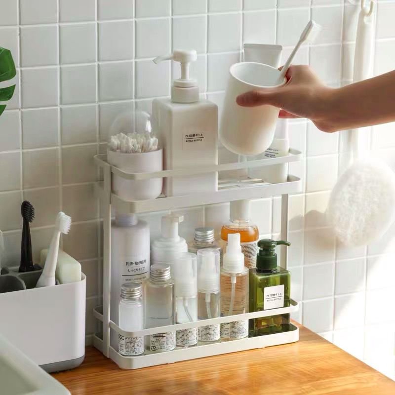 衛(wèi)生間用的越久,臺(tái)面上的東西會(huì)越來(lái)越多。牙膏、牙刷、洗手液、化妝品等都能把整個(gè)桌面堆完,每天早上找東西特別眼花繚亂。這時(shí)買(mǎi)幾個(gè)小置物架子,可以幫你在一秒鐘之內(nèi)解決桌上的雜物。