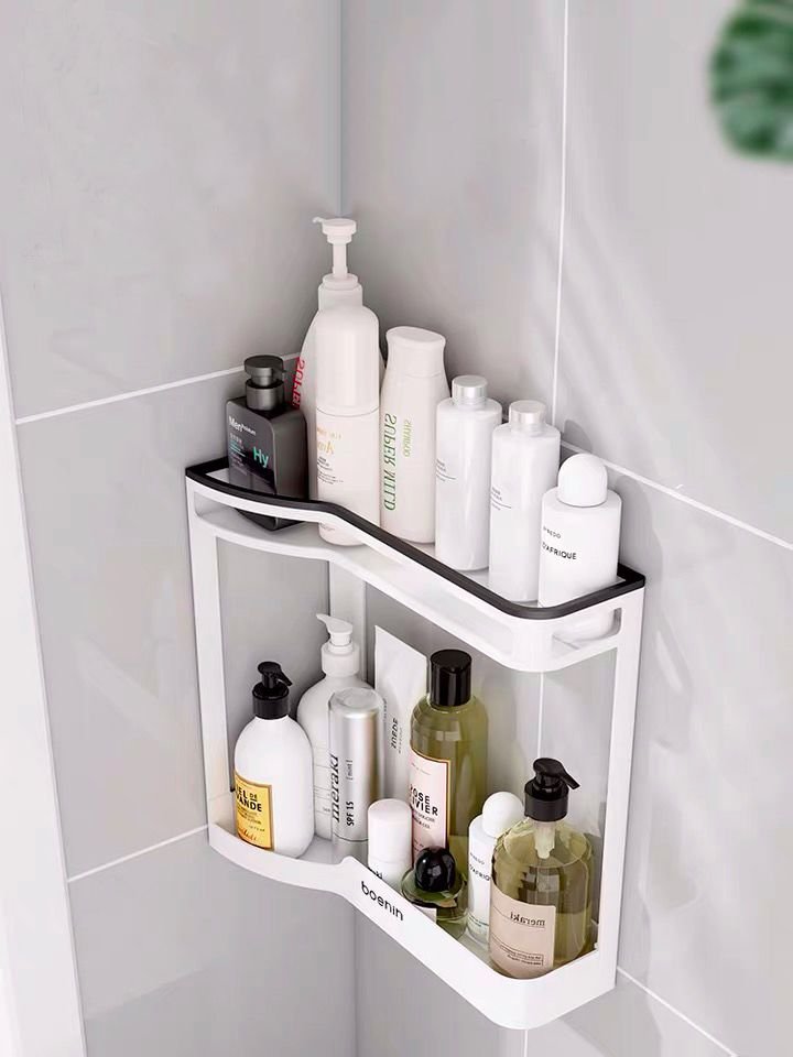 如果淋浴房事先沒(méi)有設(shè)計(jì)壁龕,可以在角上加一個(gè)置物架子,沐浴產(chǎn)品可以放在里,洗澡很方便。