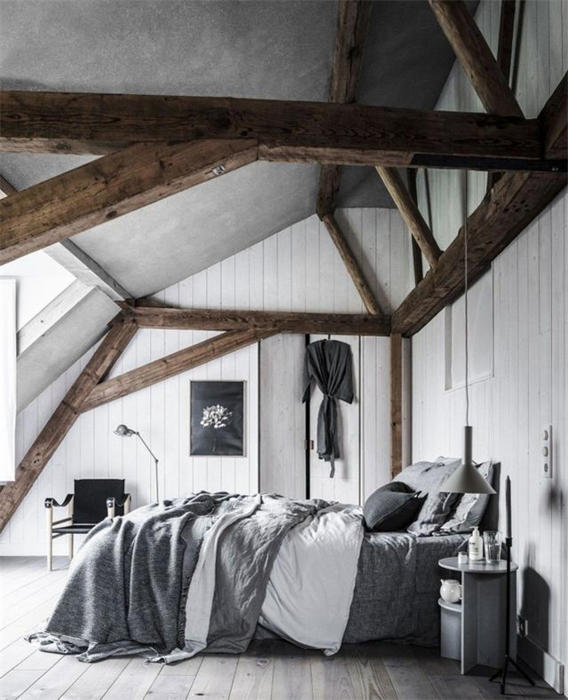 黑白灰色系能打造簡約明快,低調(diào)安靜的臥室氛圍,墻面、窗簾、家具、床上用品都選擇用不同程度的灰色,加少量的黑色,材質(zhì)的運(yùn)用盡量簡化,照明及燈光簡化到最少的程度,講究功能至上,這類低調(diào)的臥室效果是很受年輕男生歡迎的。