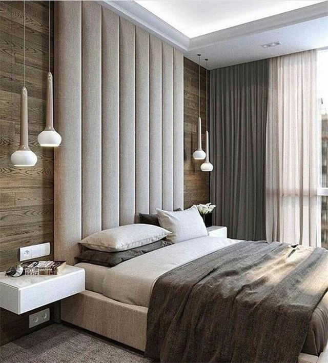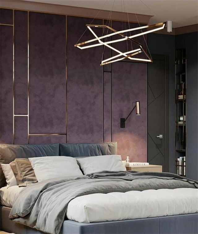 色彩的運(yùn)用上常以駝色、象牙白、奶咖、褐色、金色居多,材質(zhì)的運(yùn)用上以絲絨、真絲、高精密等有反光的為主,黃銅的元素運(yùn)用到燈具上,硬包上,以及天花吊頂上,這樣設(shè)計(jì)的臥室不僅溫馨,而且大氣,符合輕奢的精神,把優(yōu)雅的質(zhì)感體現(xiàn)了出來。
