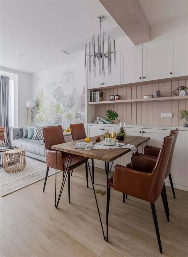 餐廳背景墻在設計上有很大的挑戰(zhàn),畢竟餐廳家具較少,要思考背景墻如何設計才能讓餐廳看起來飽滿又不失就餐的情調?可以選掛畫、照片墻的形式,也可以利用不同的材質、色彩來打造餐廳背景墻。