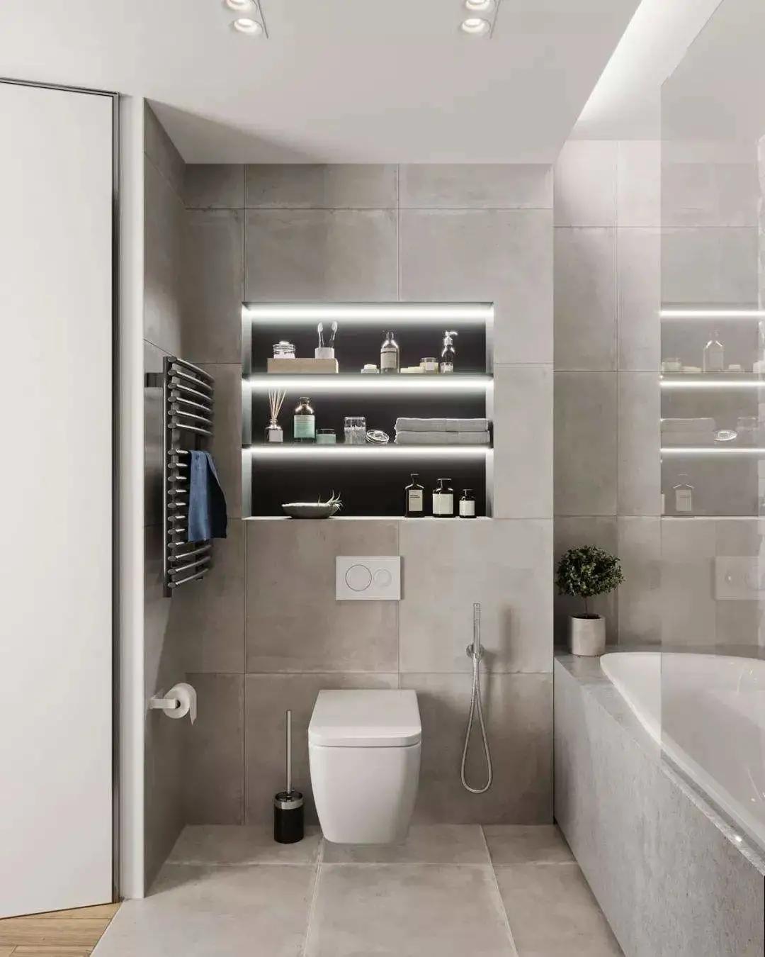 最后,要是衛(wèi)生間裝了壁龕,也要給點(diǎn)光,死角太暗也會(huì)有壓抑感。