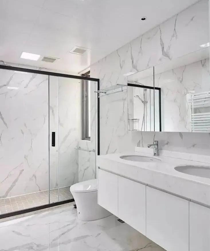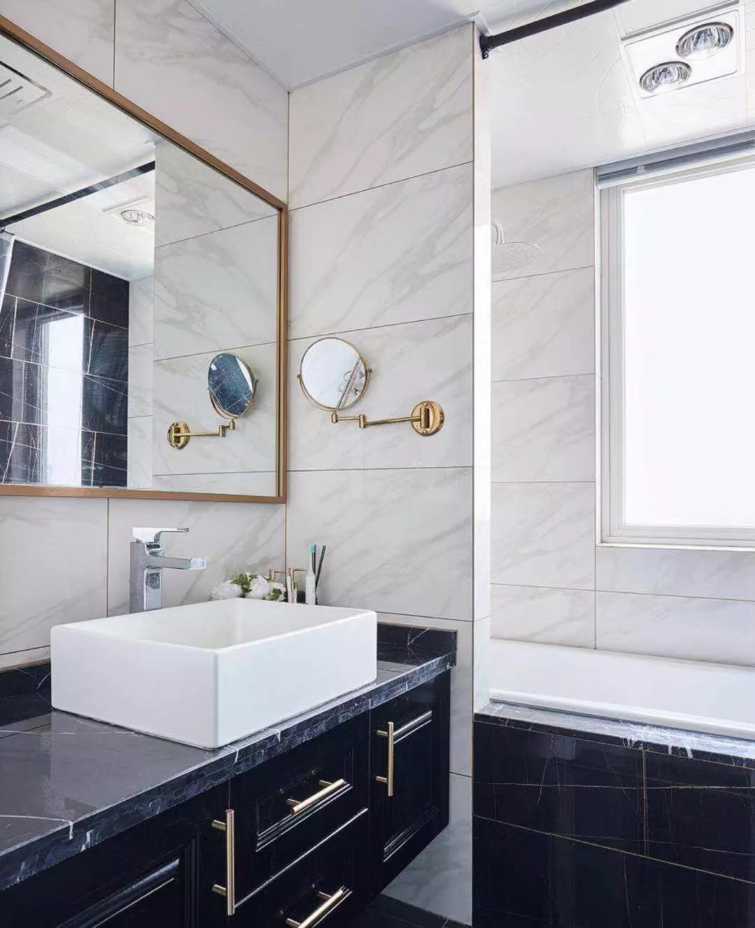 通過(guò)加大鏡面范圍,可以補(bǔ)充光源,令空間顯得更明亮一些。衛(wèi)生間的門(mén),最好使用透光的材料,比如大面積的磨砂玻璃等,可以增加室外光源的透光度。