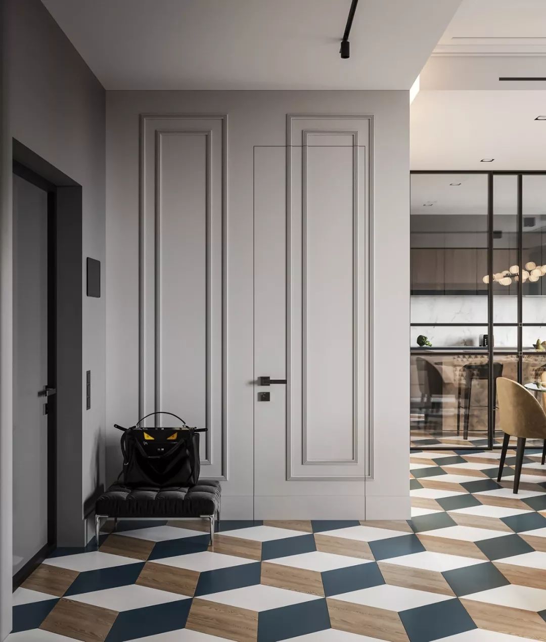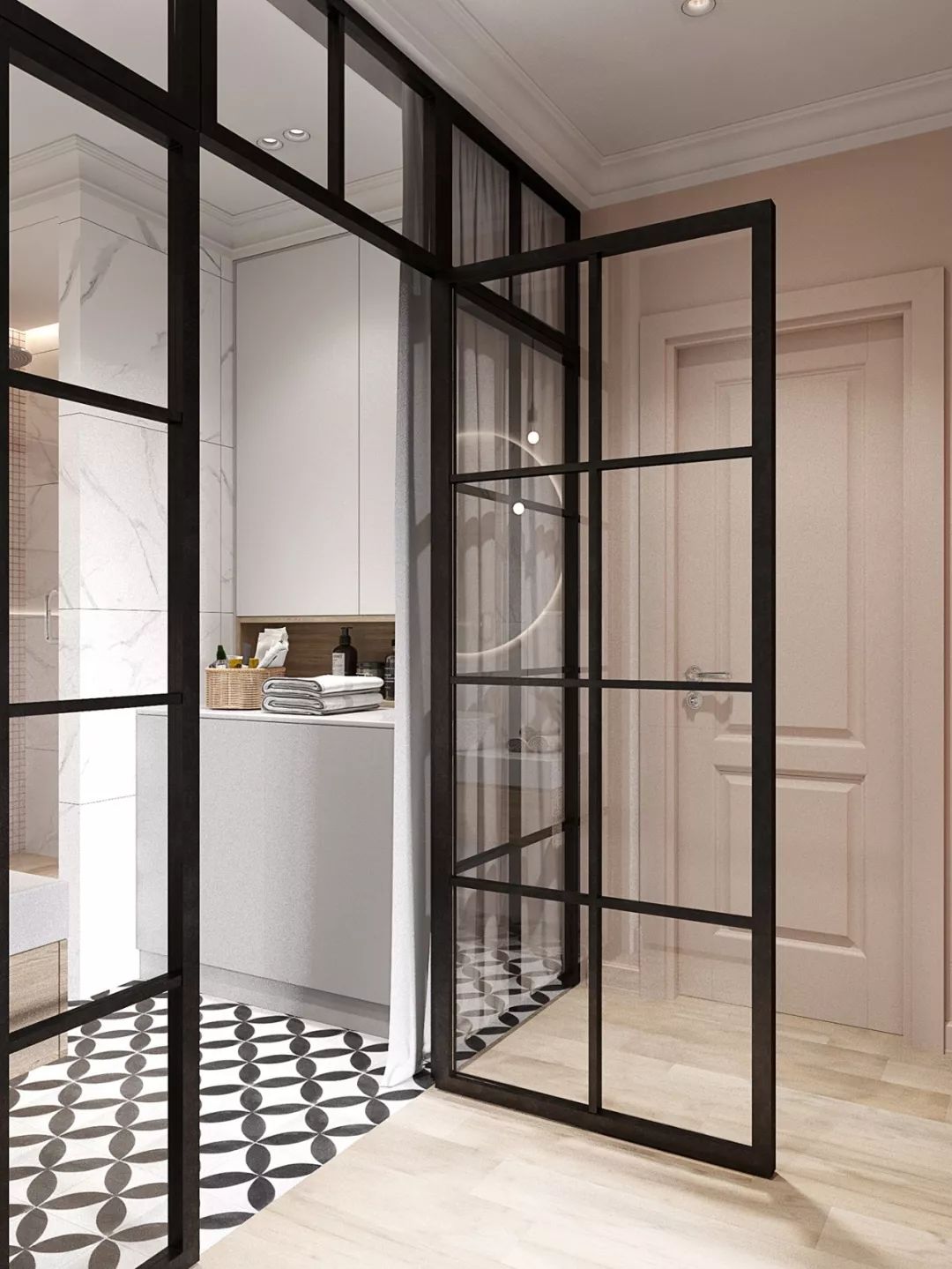 可以自動(dòng)關(guān)起來(lái)的隱形門(mén),可以有效的預(yù)防細(xì)菌和異味流出,同時(shí)也化解了入戶門(mén)正對(duì)的尷尬。