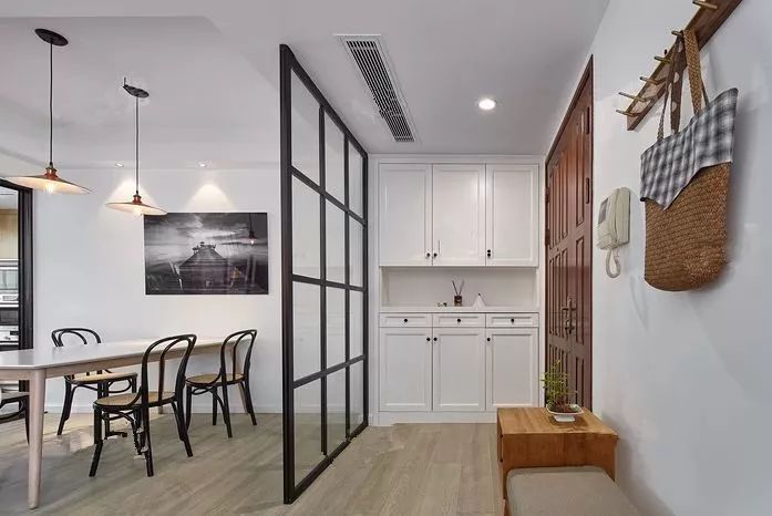 也要根據(jù)本身的情況,可以把隔斷順勢(shì)做成衣帽架的形式,實(shí)用性極強(qiáng)。