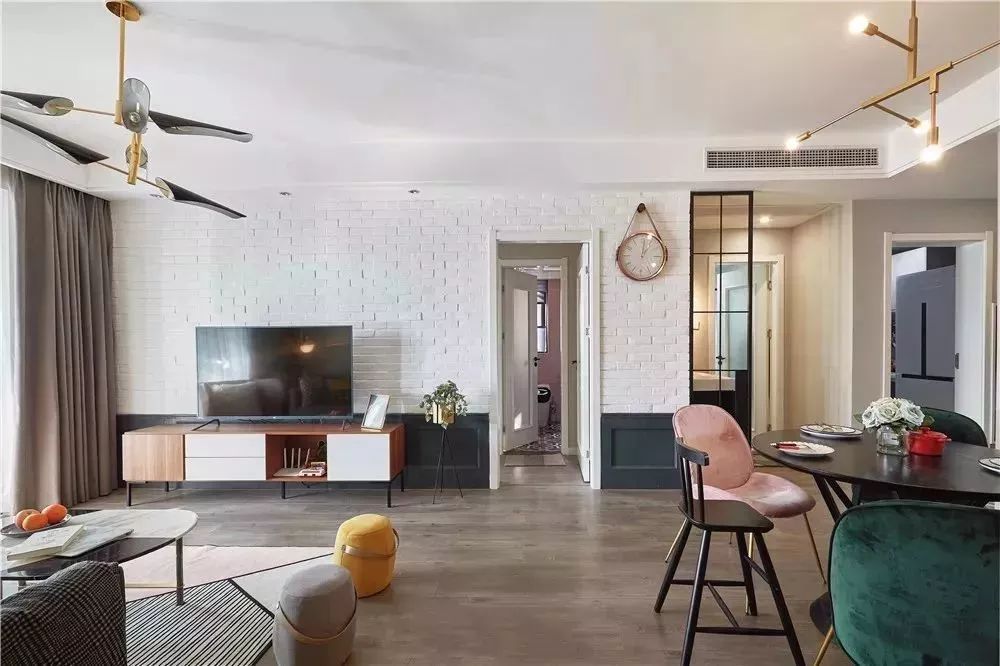 電視墻是家里的隔斷墻,該怎么設(shè)計(jì)?總體的設(shè)計(jì)原則就是不要做太滿、太大,可以適當(dāng)?shù)牧艨栈蜱U空,讓兩個空間更有交流。