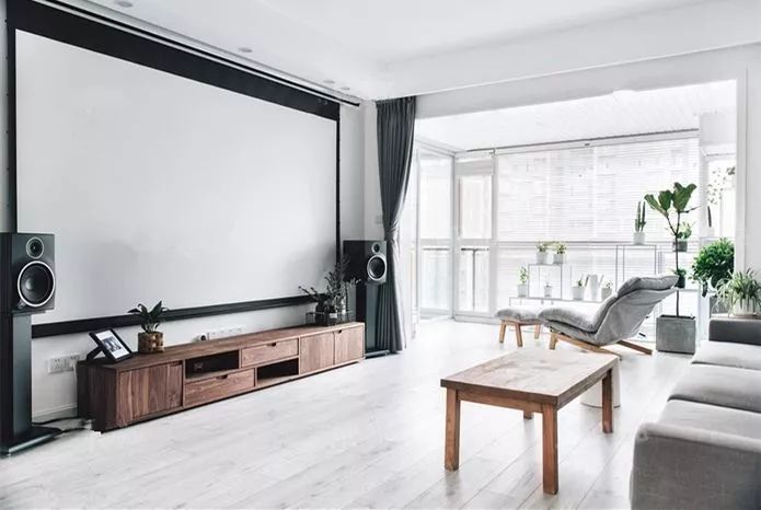 如果家里有足夠高大的墻又沒有展示、收納的需求、同時你也不需要電視。那么建議可以試著用幕布把電視墻變成大屏幕,看電影、打游戲都可以。