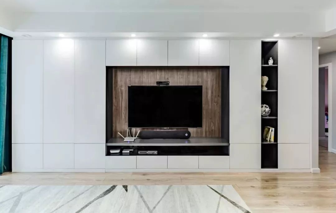 還有一種方法就是定制電視柜,美觀大氣、收納更強(qiáng)大。