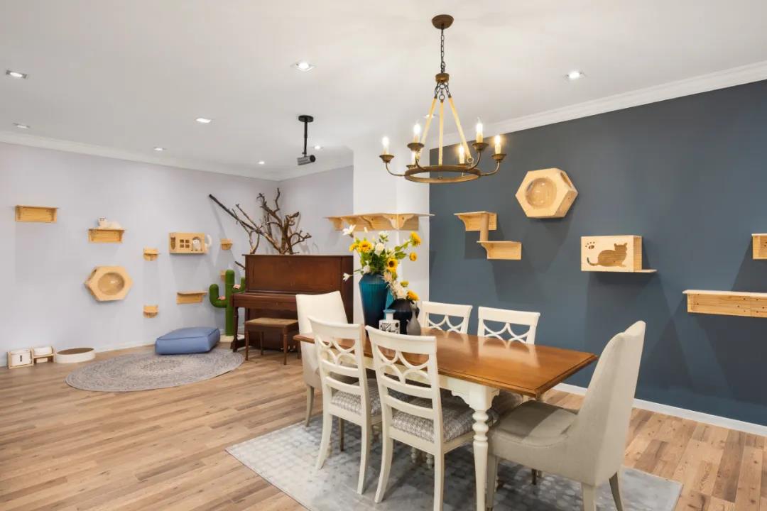 愛貓人士的家,也可以在墻上掛貓架。錯落有致的造型,讓家更靈動,貓主子也有玩樂的地方了~