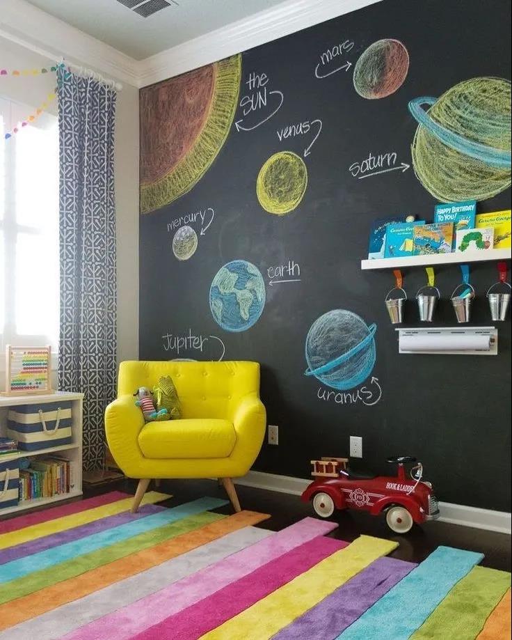在家里的墻上寫寫畫畫,似乎每個小孩子都喜歡這樣做。在他破壞家里整潔的墻面之前,給他們造一面繪畫墻吧~