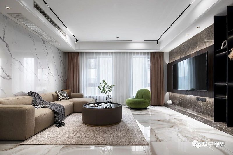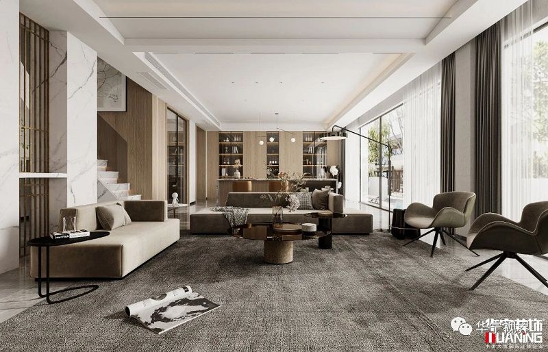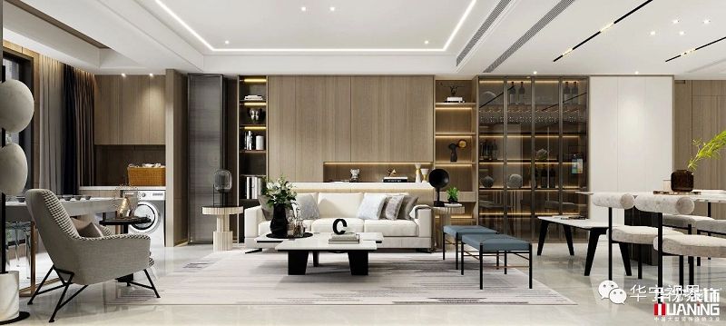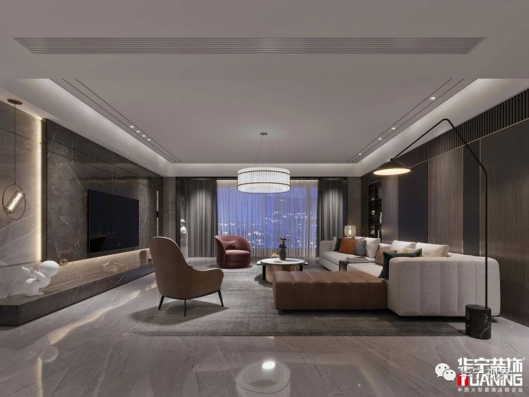 有吊頂?shù)募彝ビ蒙錈艉蜔魩н@些間接燈光經(jīng)過墻面反射到大的空間里。再在沙發(fā)兩邊放置落地?zé)簦屨麄€客廳無死角照明。