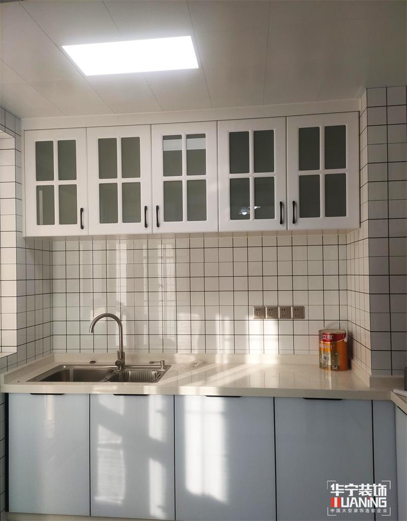 ▲廚房主顏色白色小瓷磚為主,搭配木紋櫥柜面板,灶臺(tái)上的墻面裝上實(shí)用的收納柜,整體顯得實(shí)用又整潔。