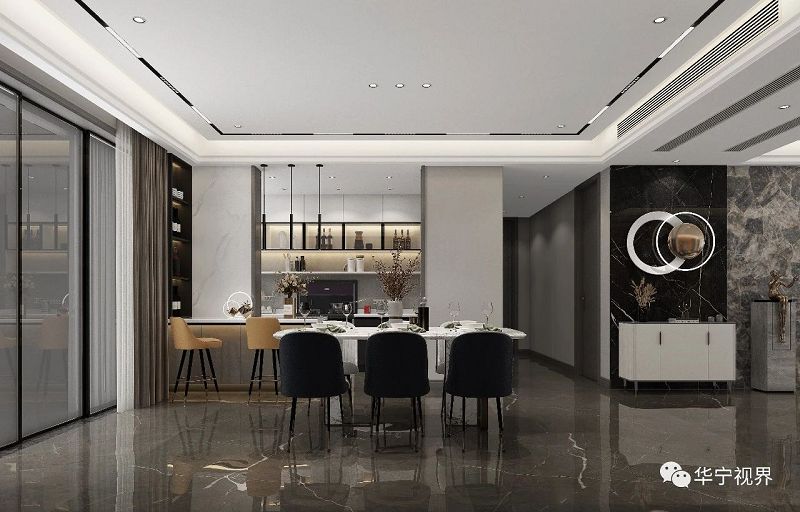 以自然的紋理、材質(zhì)、線性燈飾點綴修飾,呈現(xiàn)當(dāng)代空間功能整合、美學(xué)并敘的開放式格局。