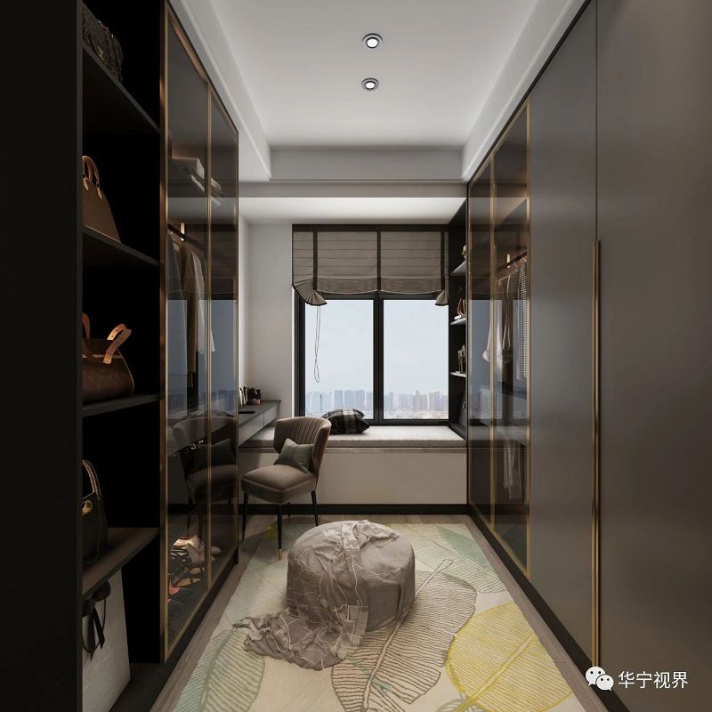 衣帽間寬敞整潔,收納有序。小飄窗的設(shè)置,既方便平時整理衣物,又能讓人在閑暇時憑窗小坐。