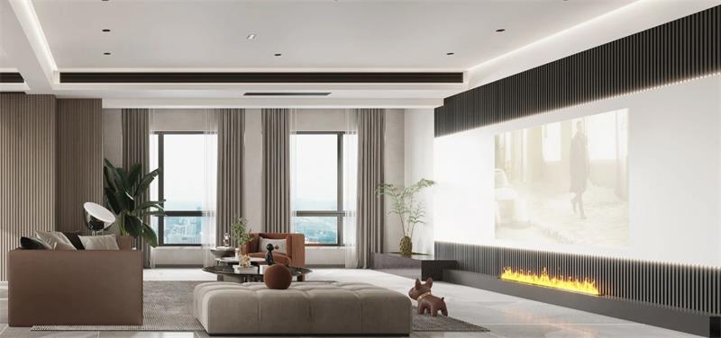 打造一個(gè)家庭影院,也是一個(gè)很好休閑空間,咱們可以取消電視,設(shè)計(jì)投影幕布,可以讓客廳的觀影更加舒適。