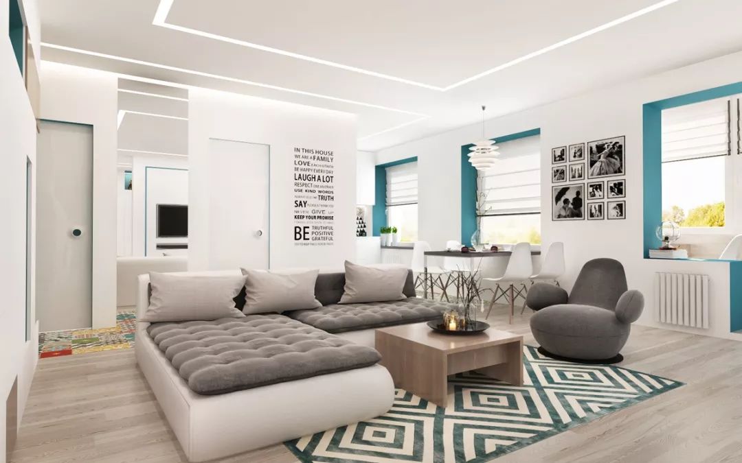 地面通常是最先引人注意的部分,其色彩、質(zhì)地和圖案能直接影響室內(nèi)觀感。利用地毯來(lái)區(qū)分功能區(qū),不用大費(fèi)周章的設(shè)計(jì)隔斷,既方便又省事。