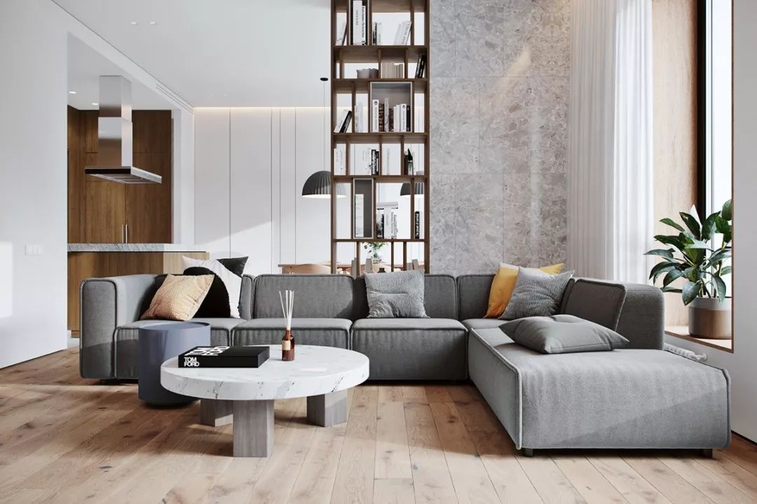 用沙發(fā)作為居室隔斷,只需要在正常擺放家具的時(shí)候考慮到分隔作用即可。例如,將客廳中的沙發(fā)擺放成L 形或 U 形,利用沙發(fā)的一側(cè)作為客廳與餐廳之間的軟隔斷。