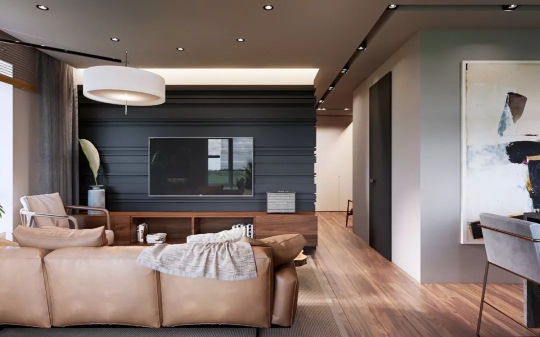 客廳沙發(fā)區(qū)域,在頂面使用小射燈+軌道燈等小巧的燈具來(lái)做好空間的環(huán)境照明,地面和配合使用落地?zé)簟?/span>