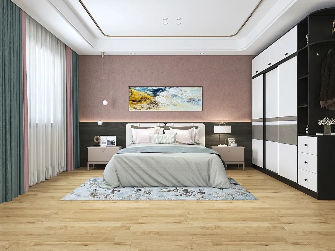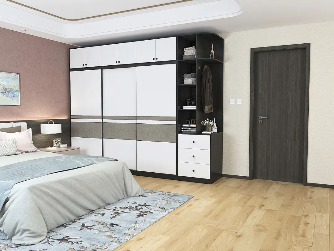 平開門需要向外打開,所以柜子到床的距離不能少于60cm,我家就是犯了這個錯誤,所以打開門之后連站人的位置都沒有了。而推拉門衣柜最大的優(yōu)點是省空間,可以挨著床擺放。