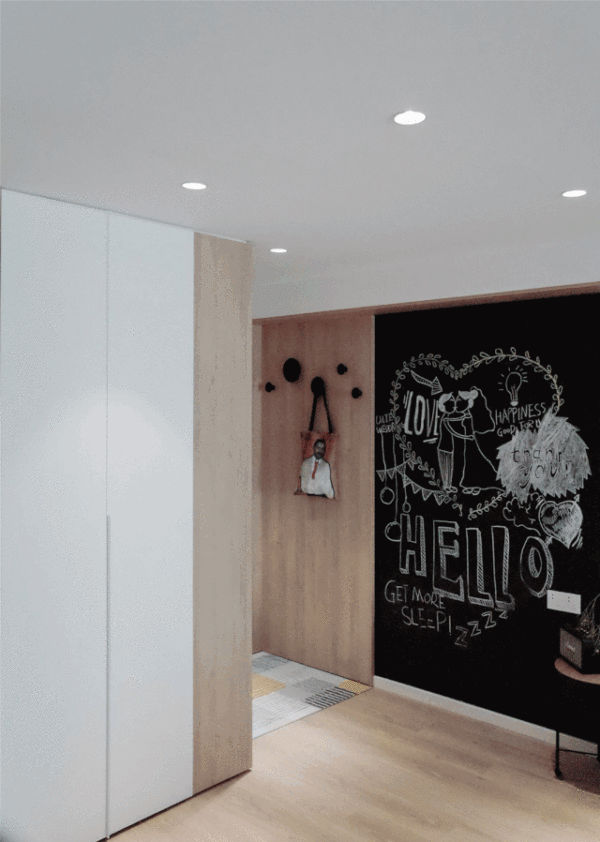 如果家里有小孩,那就利用走廊墻面裝上黑板墻,方便孩子涂涂畫畫,豐富親子生活,還豐富了空間層次。