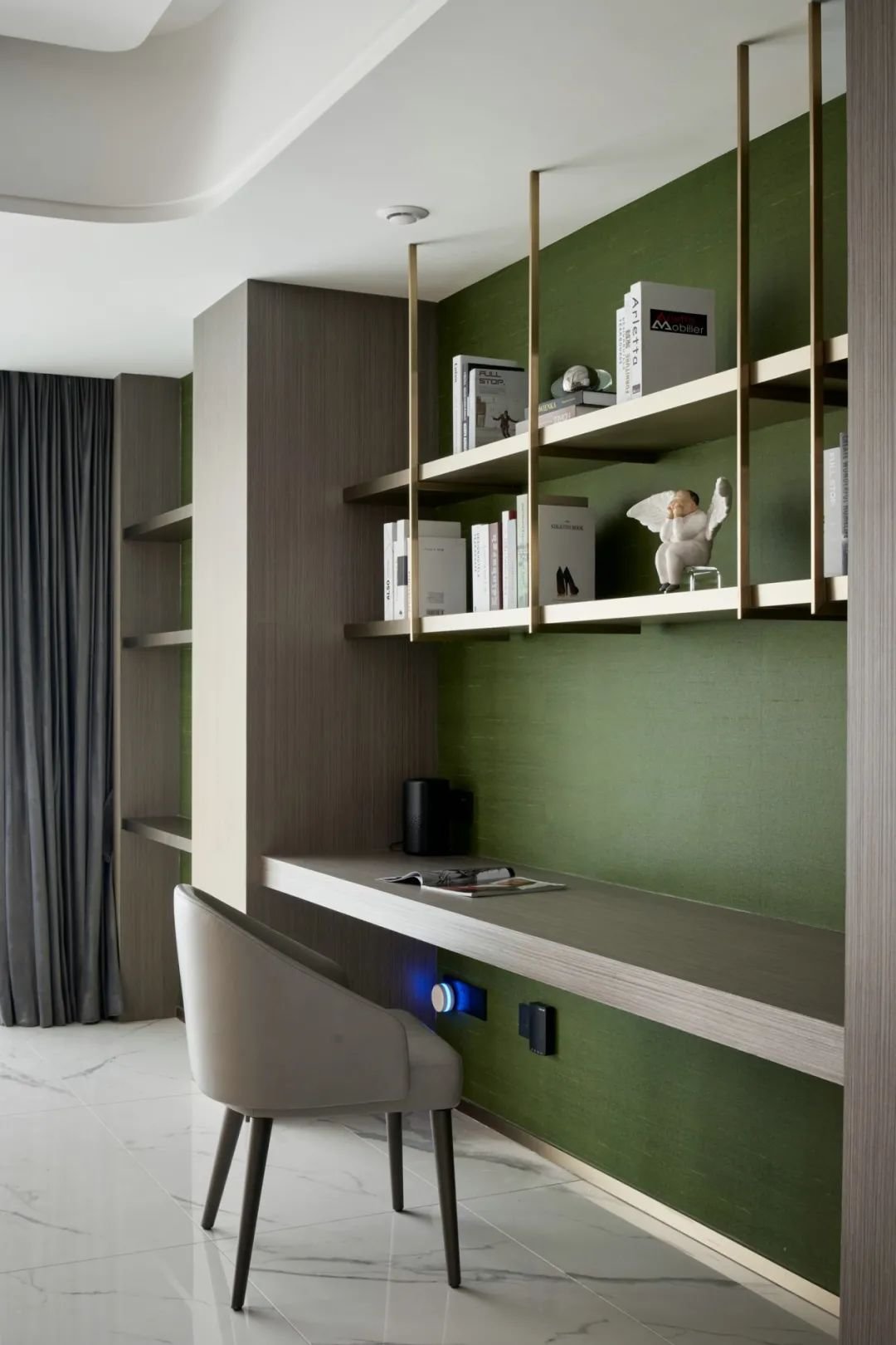 要是空間夠用,還能在閱讀區(qū)的基礎(chǔ)上,嵌入小型書桌、坐塌等,延伸出一個小型 “辦公區(qū)”。
