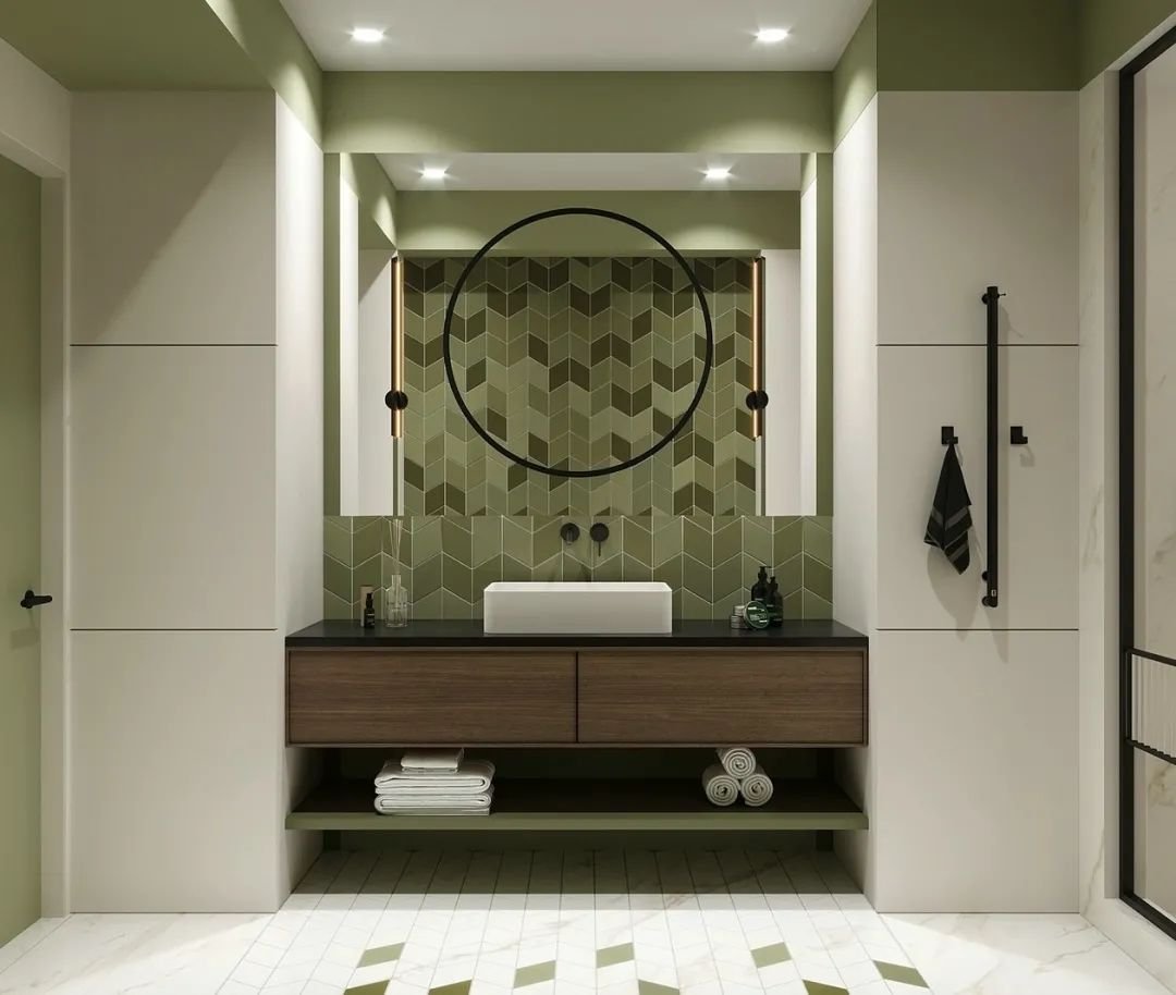 洗手臺上面再裝上鏡柜,就是一個完美的化妝區(qū)了,鏡子還兼具一定的放大空間的效果。