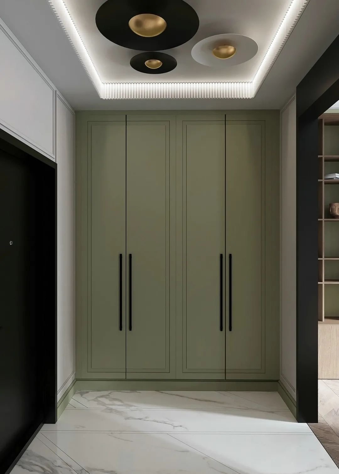 根據(jù)自家的需求,嵌入整墻柜體,打造成小型的“衣帽間”、“儲物間”等都可以,擴大家里的收納空間,不浪費每1㎡。(前提是過道空間要夠)